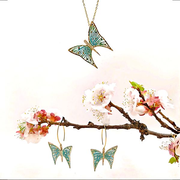 Χειροποίητα κρεμαστά σκουλαρίκια ''Πεταλούδες'' από επιχρυσωμένο ασήμι 925 με ορυκτές πέτρες. Τα σκουλαρίκια μας είναι εμπνευσμένα από Έλληνες δημιουρ..